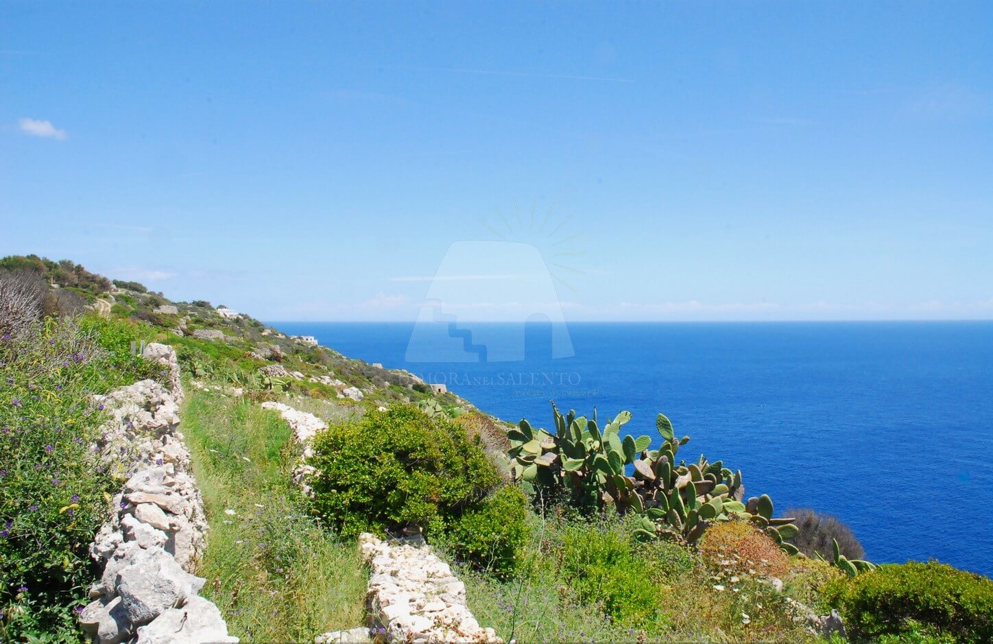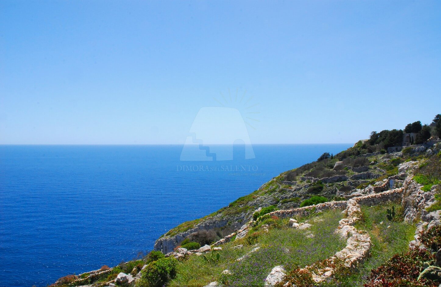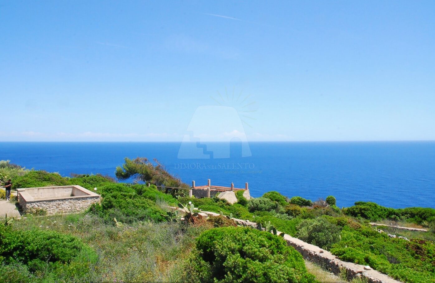 Dimora nel Salento propone in vendita proprietà vista mare a Gagliano del Capo situata in una posizione riservata, perfetta per chi cerca tranquillità e bellezza naturale. La proprietà si estende su un terreno di 5400 mq, arricchito da un giardino mediterraneo terrazzato che offre una vista mare mozzafiato.