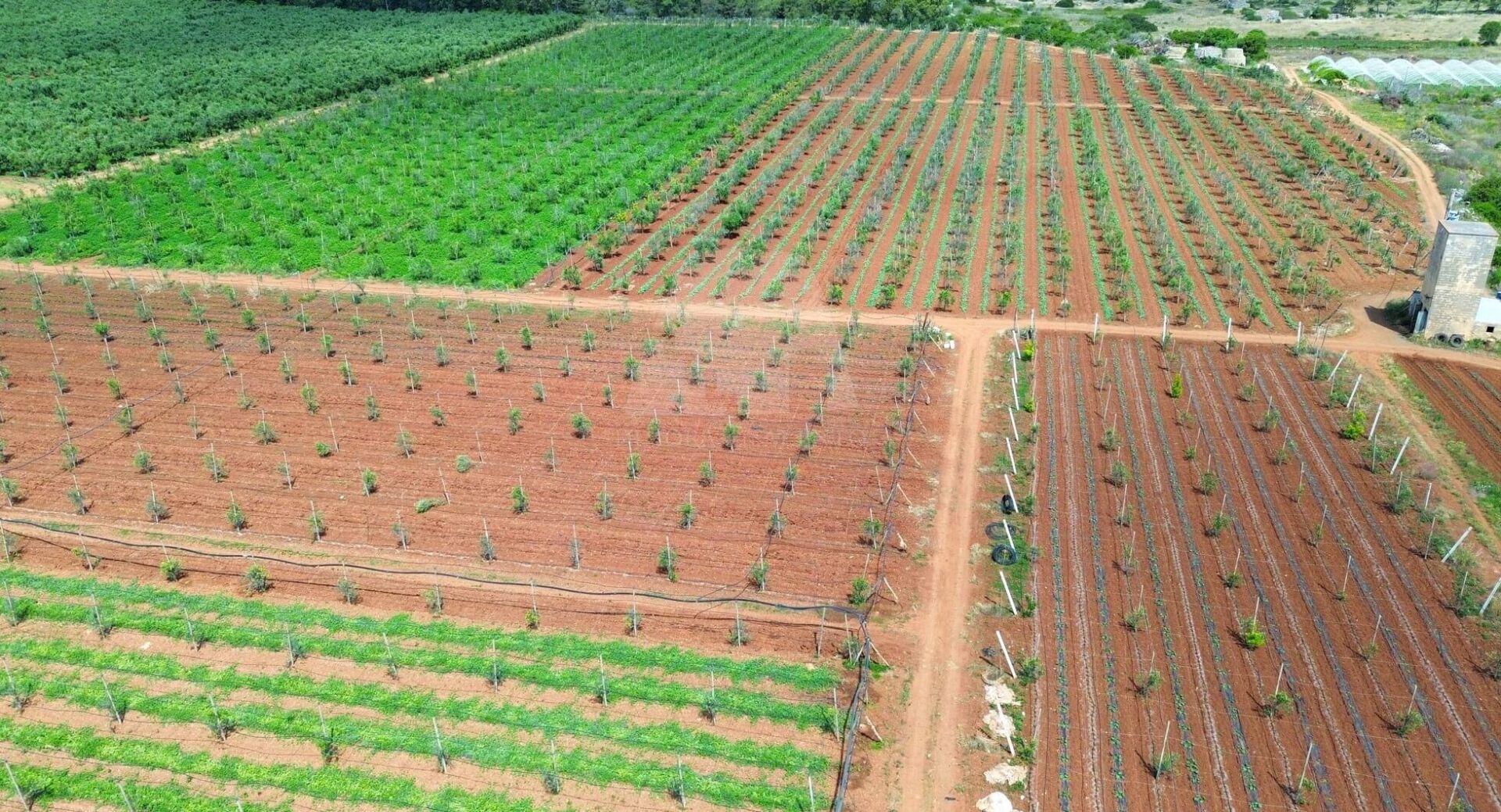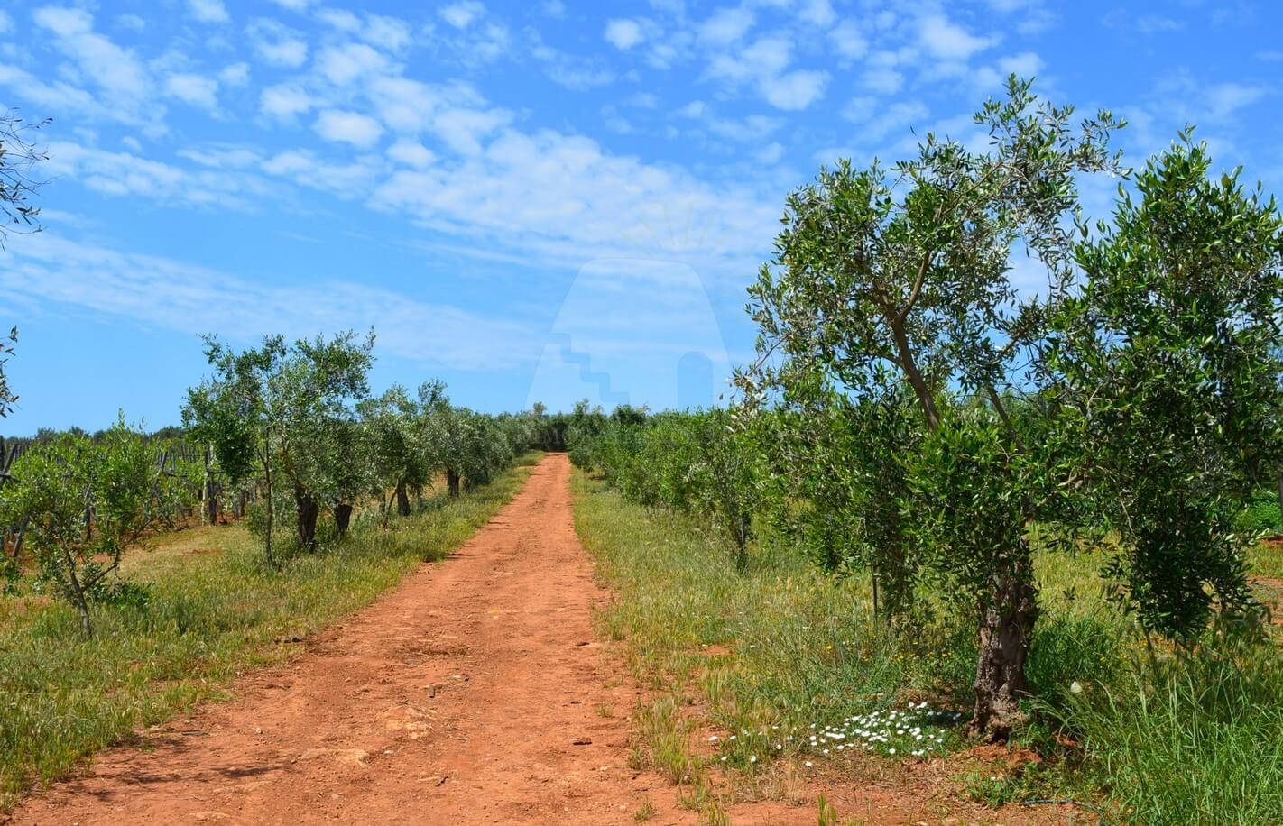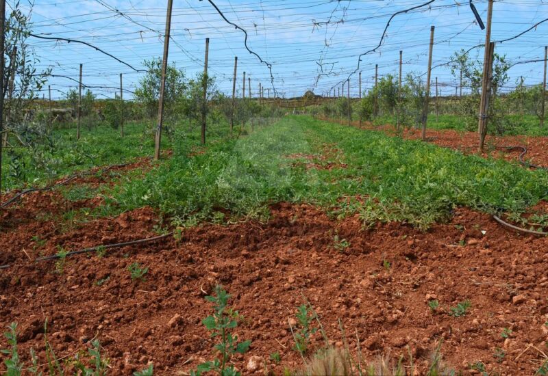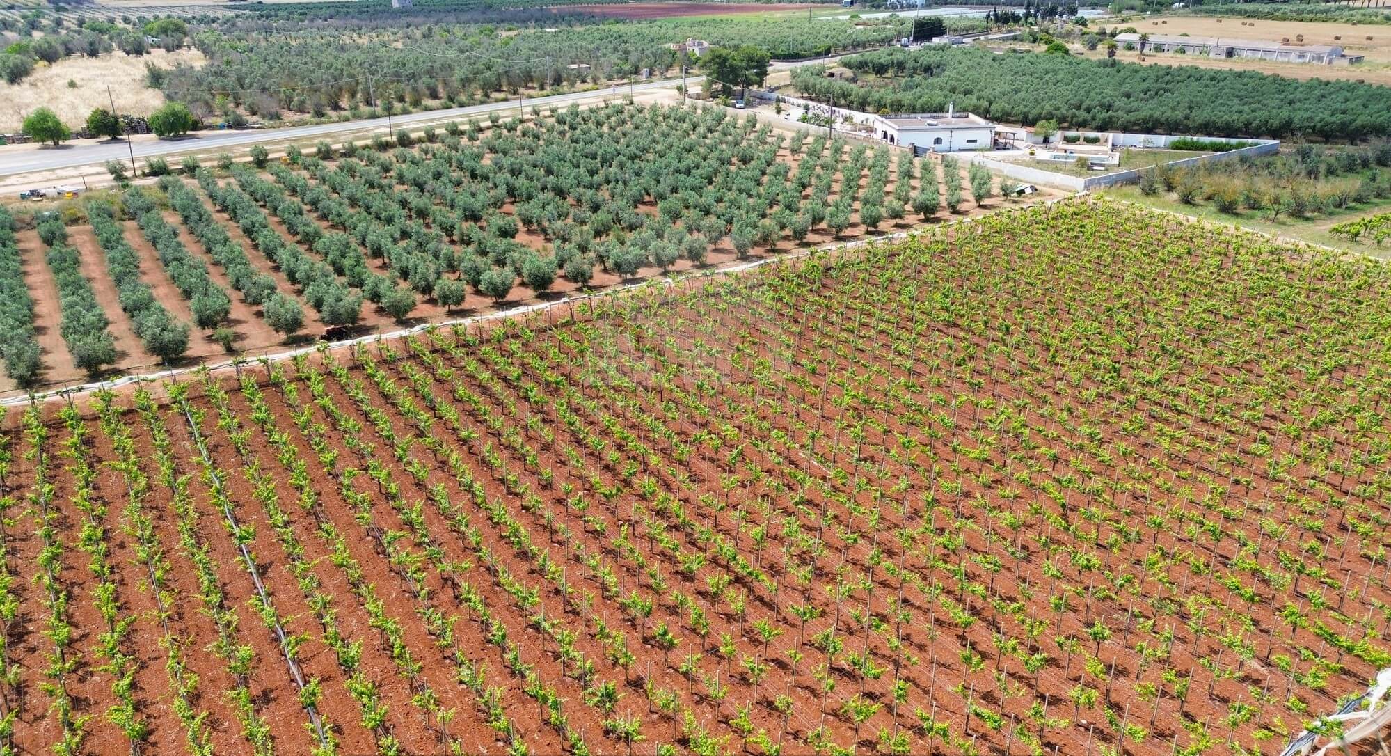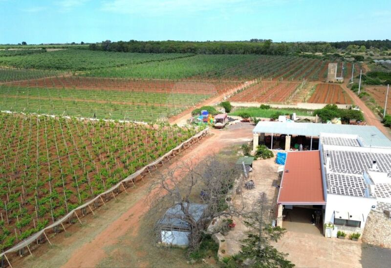 L’area comprende ben 10 ettari di uliveto con circa 4.000 alberi della pregiata varietà Leccino, oltre a 2 ettari dedicati alla coltivazione di uva da tavola (varietà Vittoria e Uva Italia) e 1 ettaro seminativo. La proprietà è dotata di un pozzo artesiano, vasche di raccolta dell’acqua, una cisterna e un impianto di irrigazione che copre l’intera superficie, garantendo una gestione ottimale delle risorse idriche.