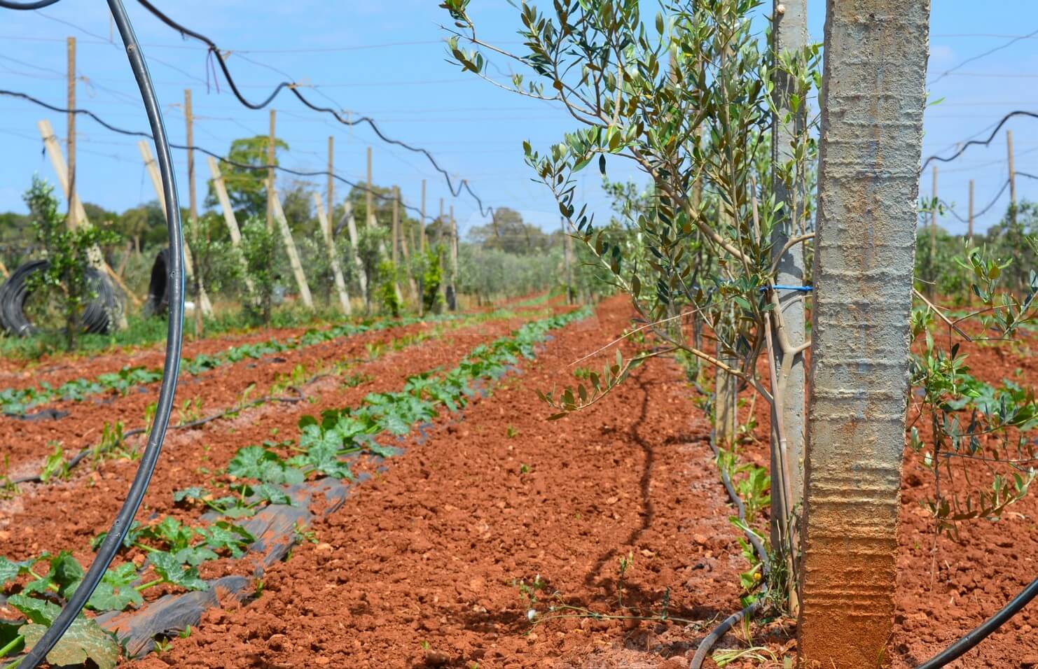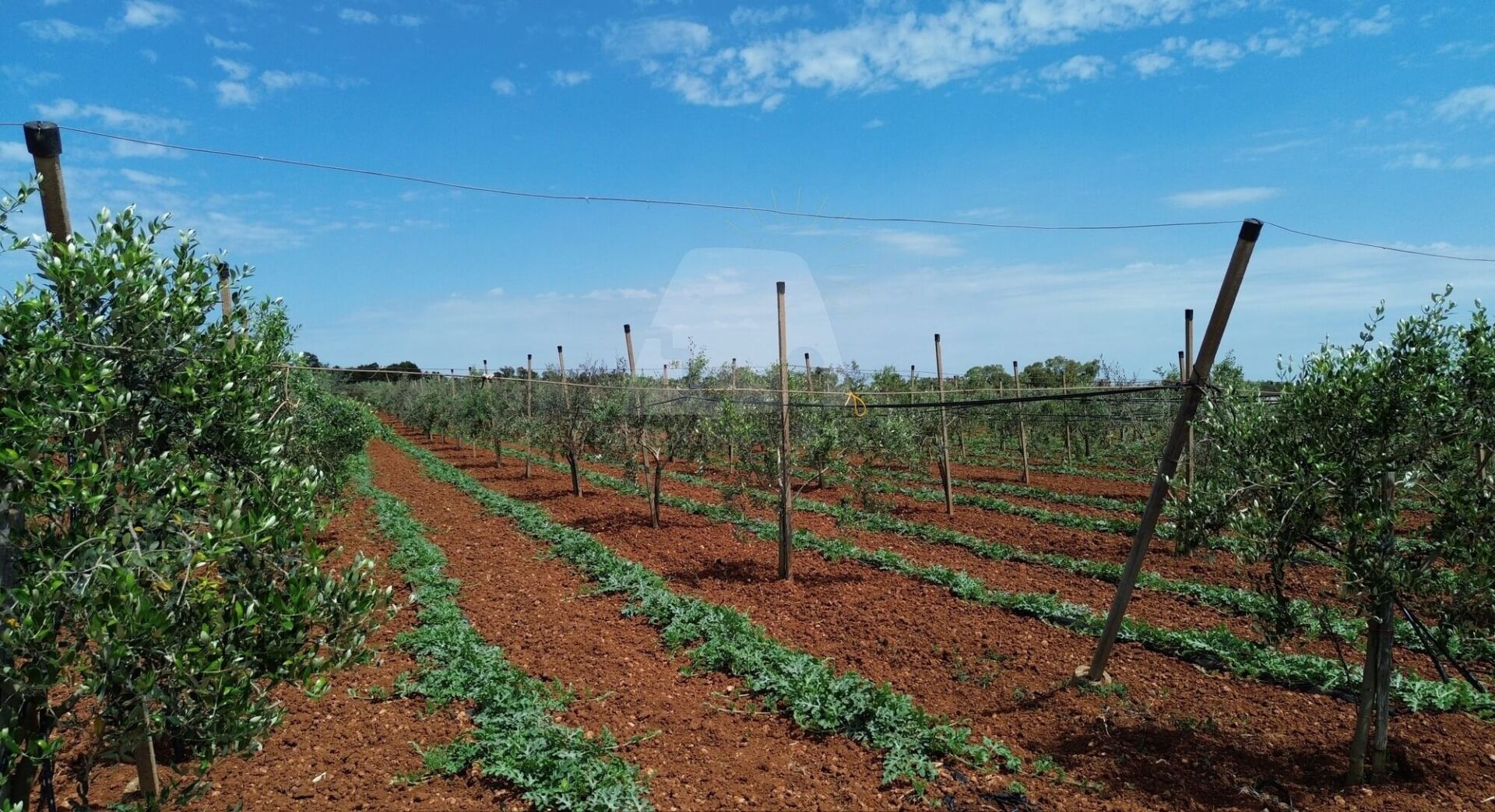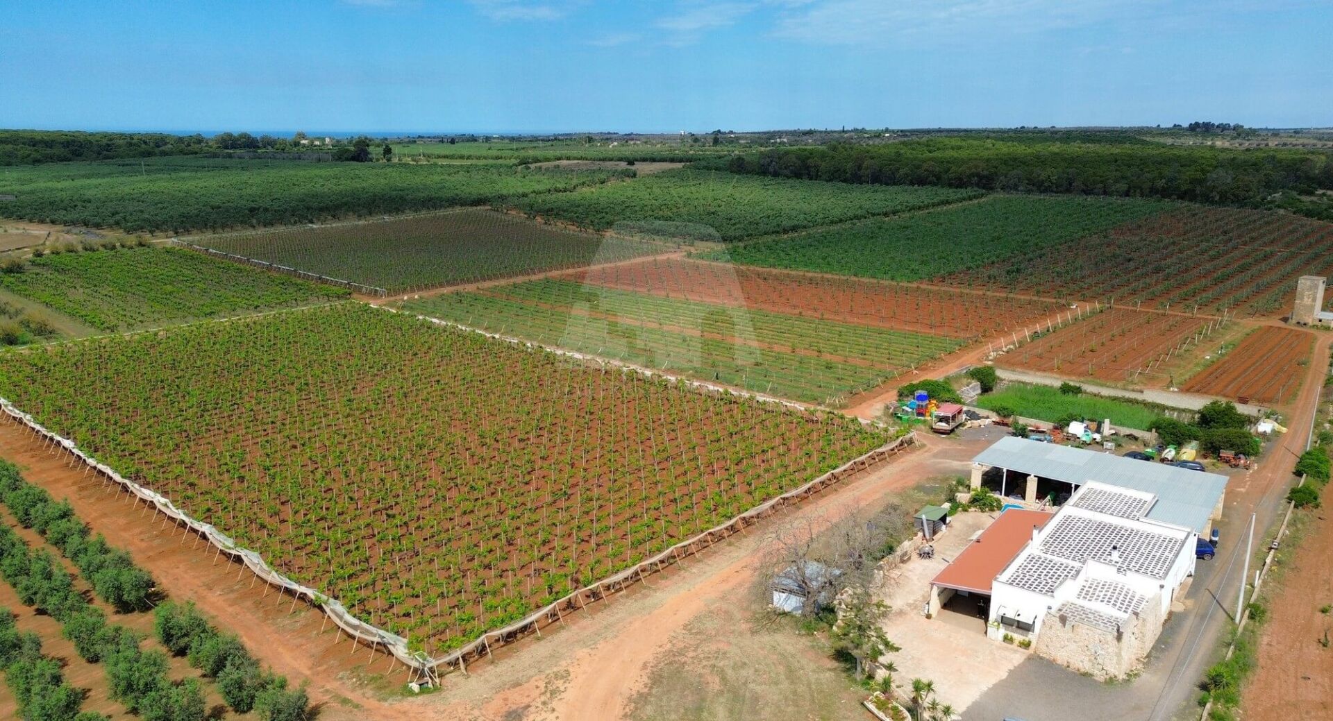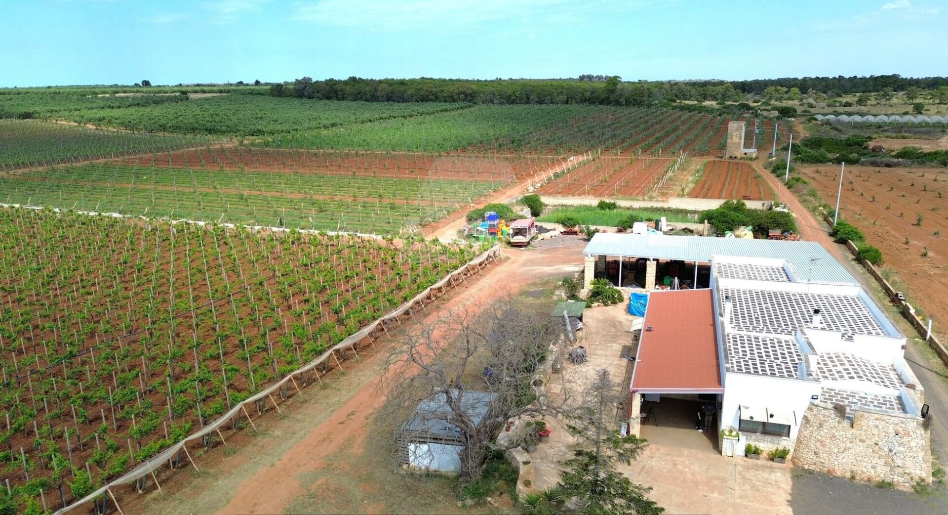 L’area comprende ben 10 ettari di uliveto con circa 4.000 alberi della pregiata varietà Leccino, oltre a 2 ettari dedicati alla coltivazione di uva da tavola (varietà Vittoria e Uva Italia) e 1 ettaro seminativo. La proprietà è dotata di un pozzo artesiano, vasche di raccolta dell’acqua, una cisterna e un impianto di irrigazione che copre l’intera superficie, garantendo una gestione ottimale delle risorse idriche.