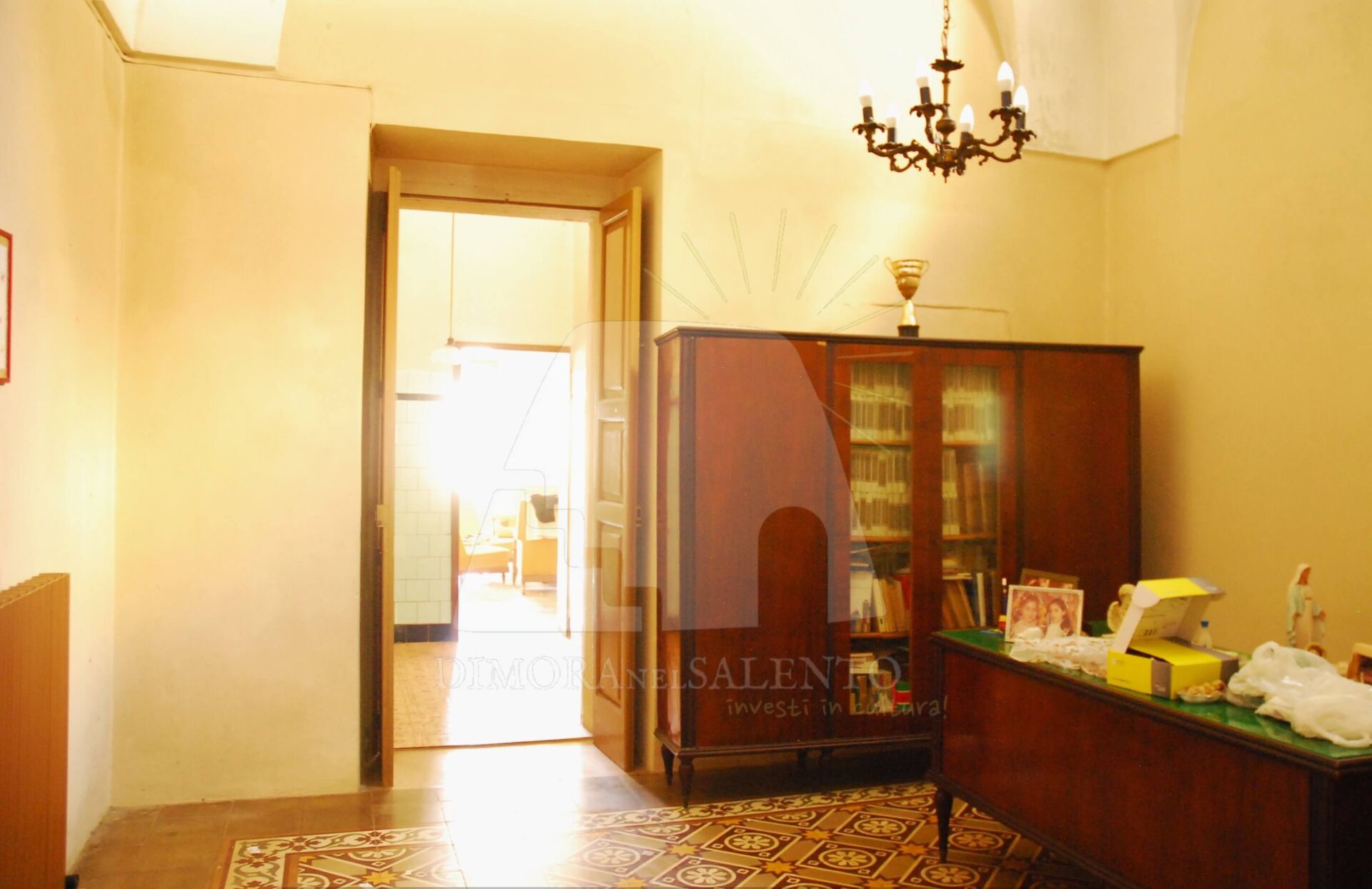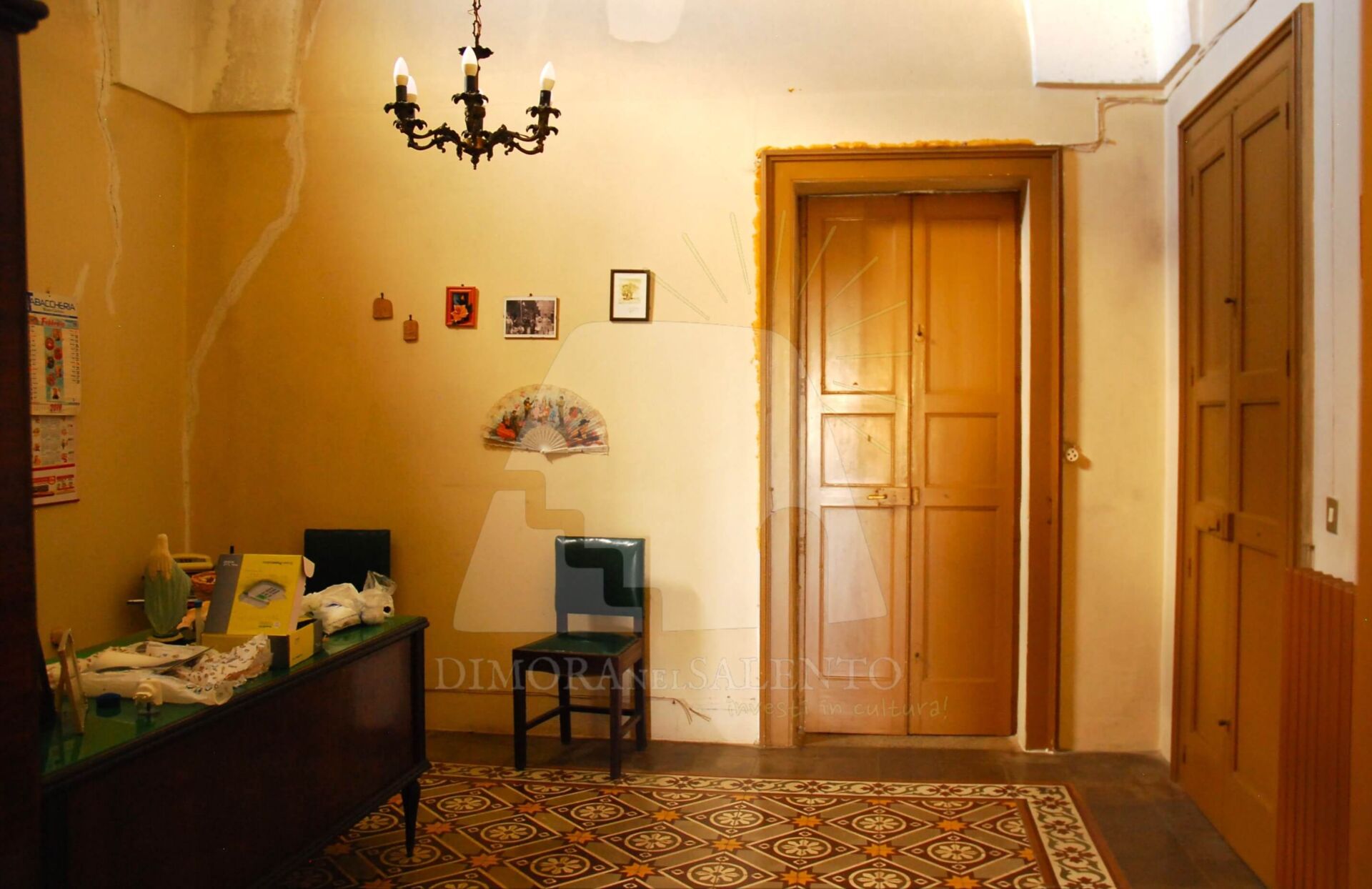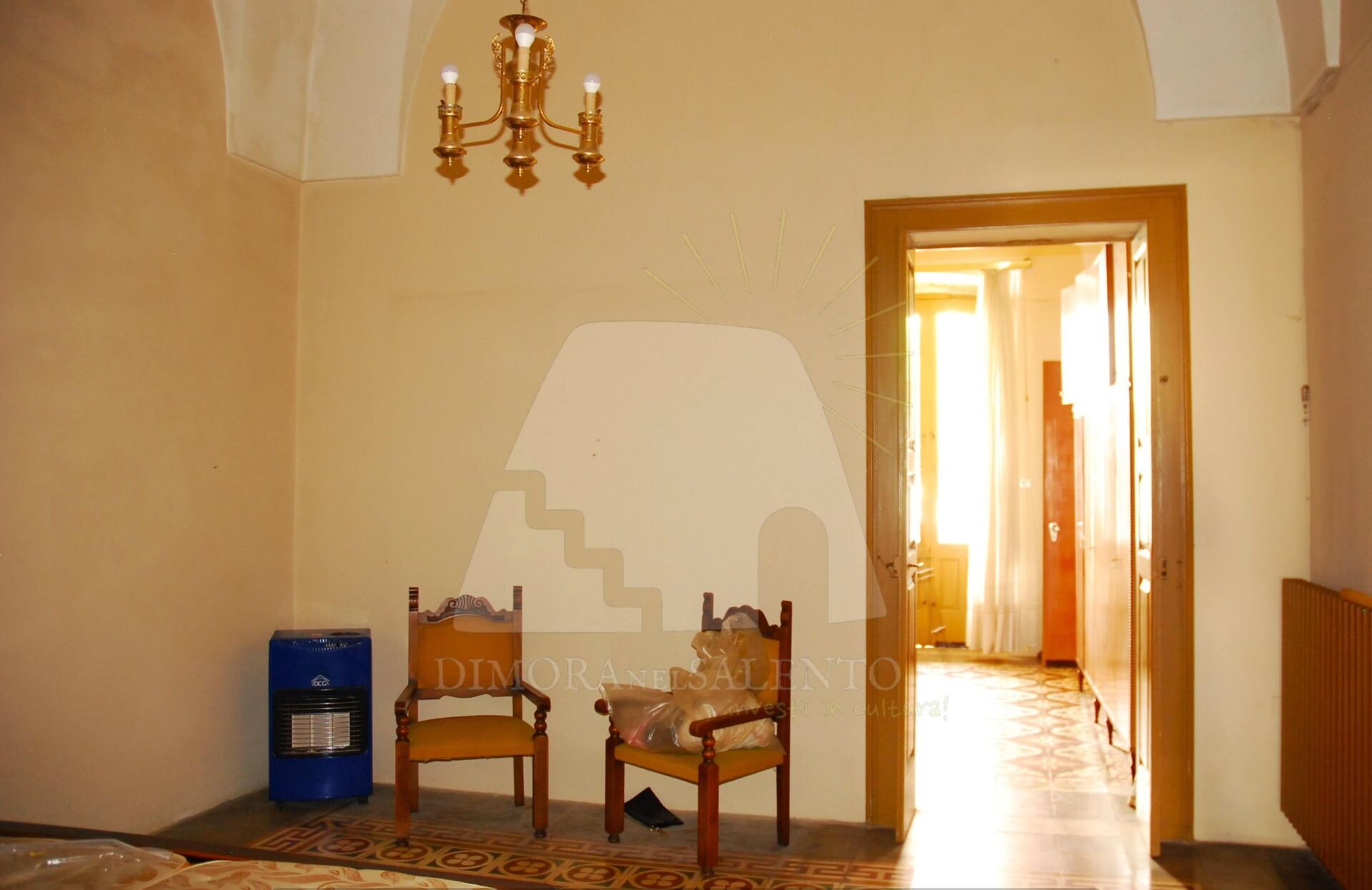 - Un corridoio centrale che disimpegna tre ampie stanze con volte a stella e pavimenti in cementine decorate originali.