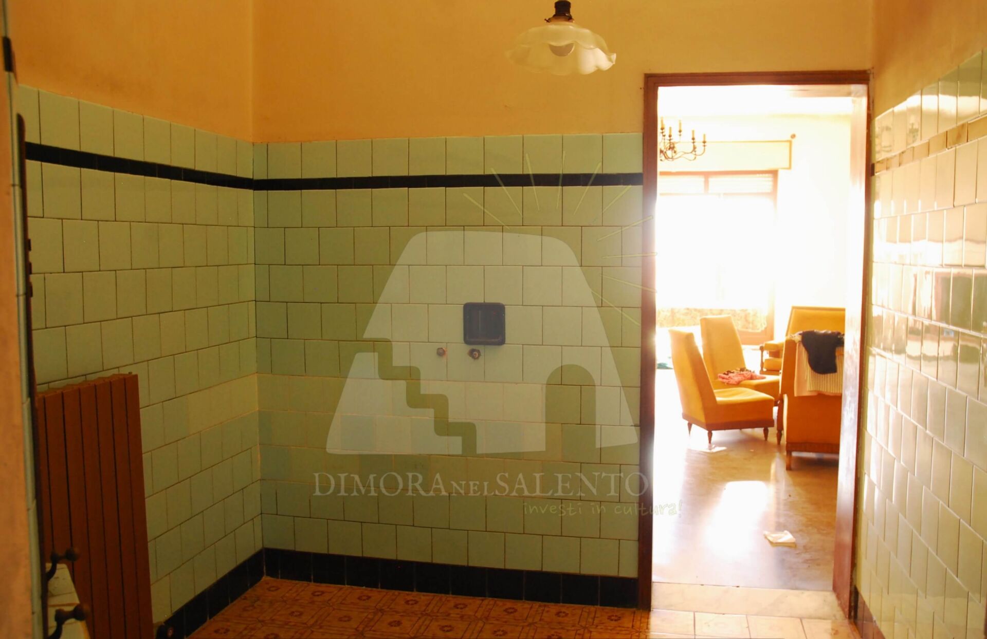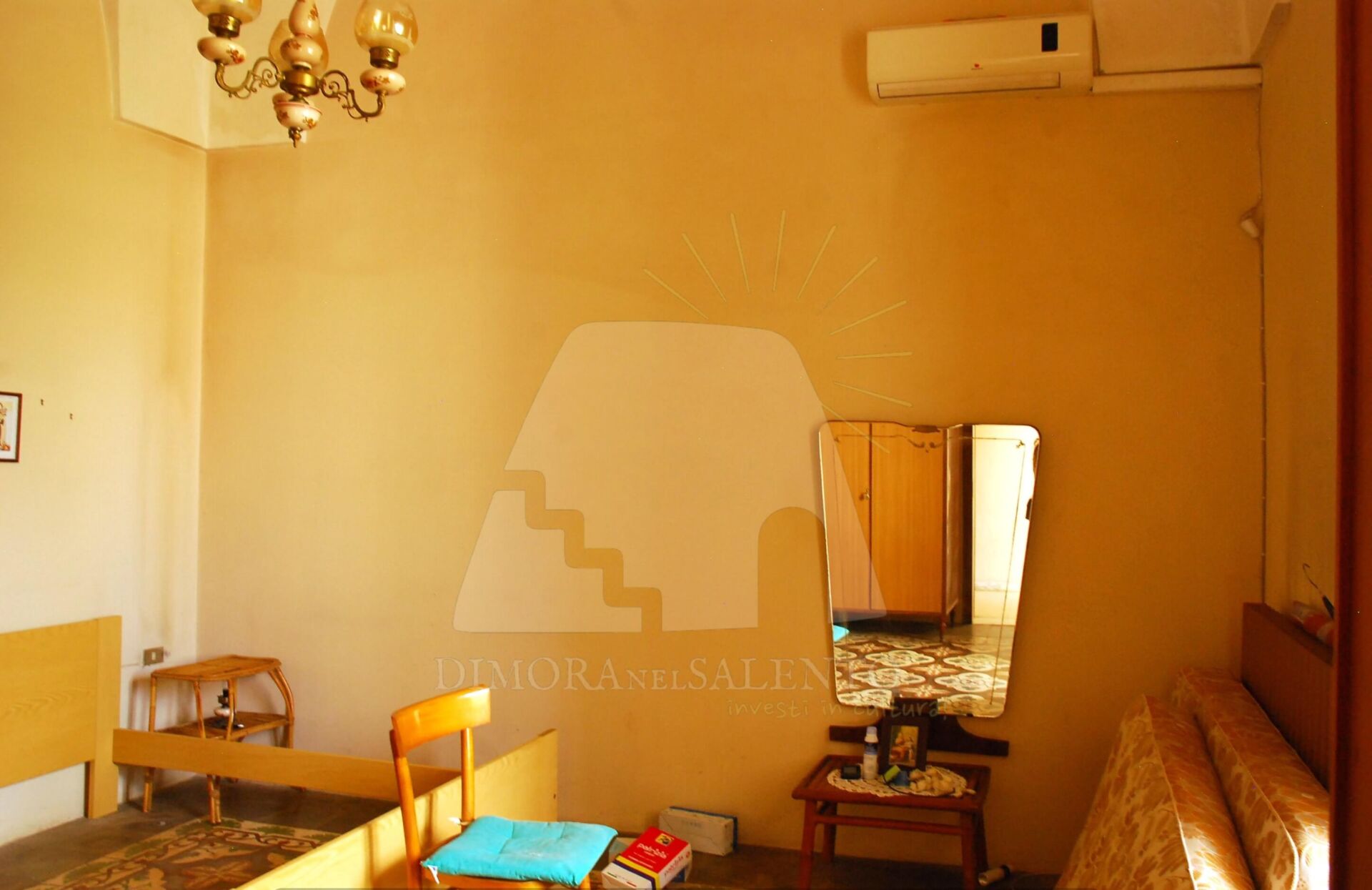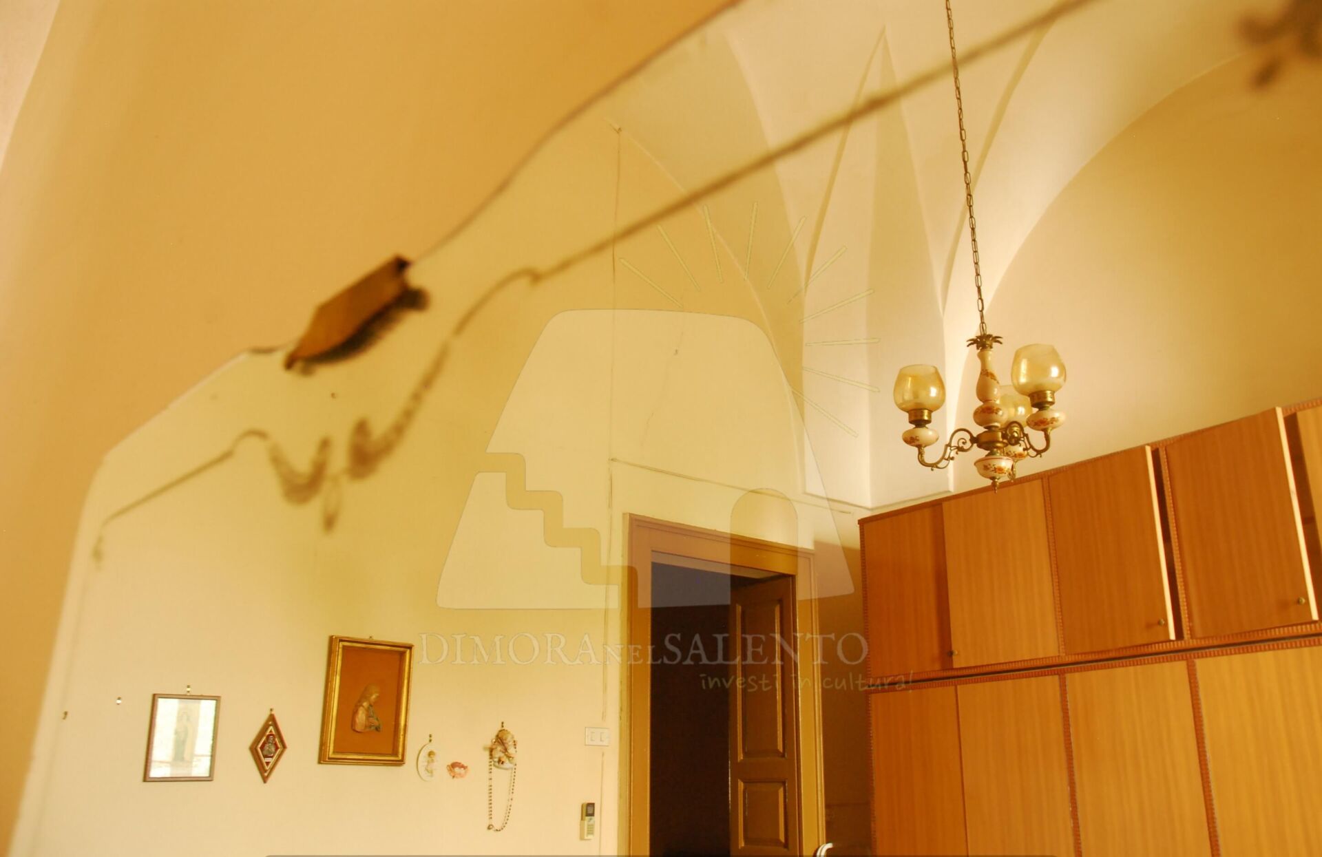 - Un corridoio centrale che disimpegna tre ampie stanze con volte a stella e pavimenti in cementine decorate originali.
