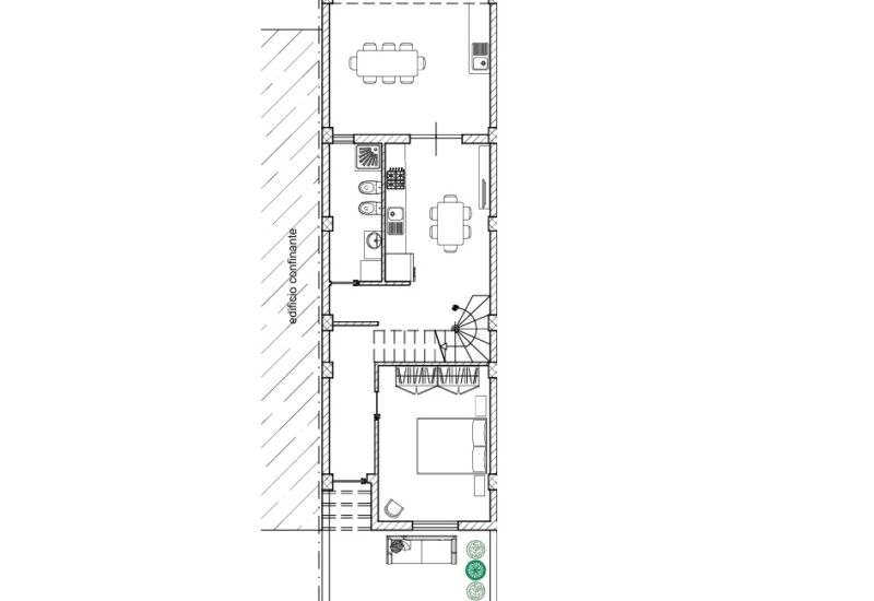 - Piano Terra: Ingresso su zona giorno luminosa con angolo cottura, una camera da letto e un bagno funzionale.