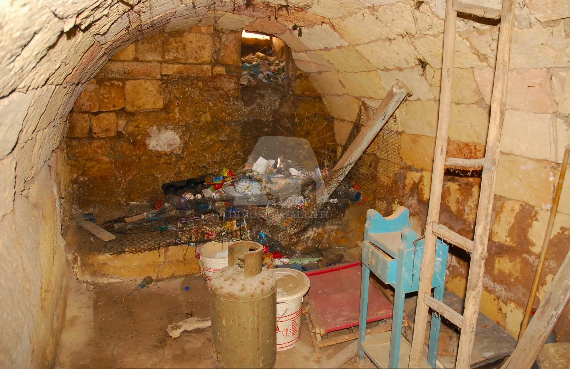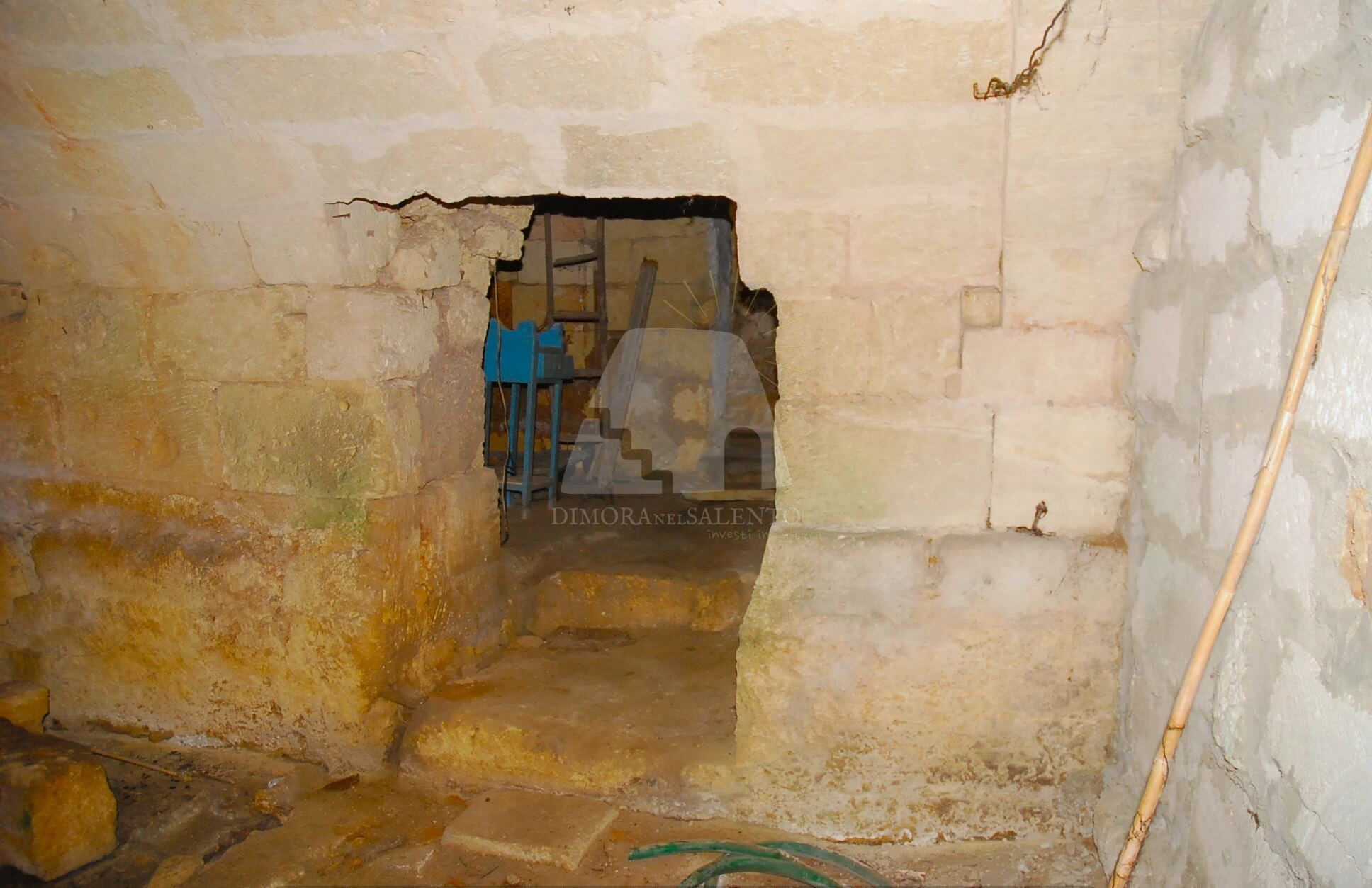 Il piano terra di circa 50 mq è composto da un vano ingresso con volta a botte impreziosito da un camino, due vani con volte a stella, una stanzia ed un bagno.