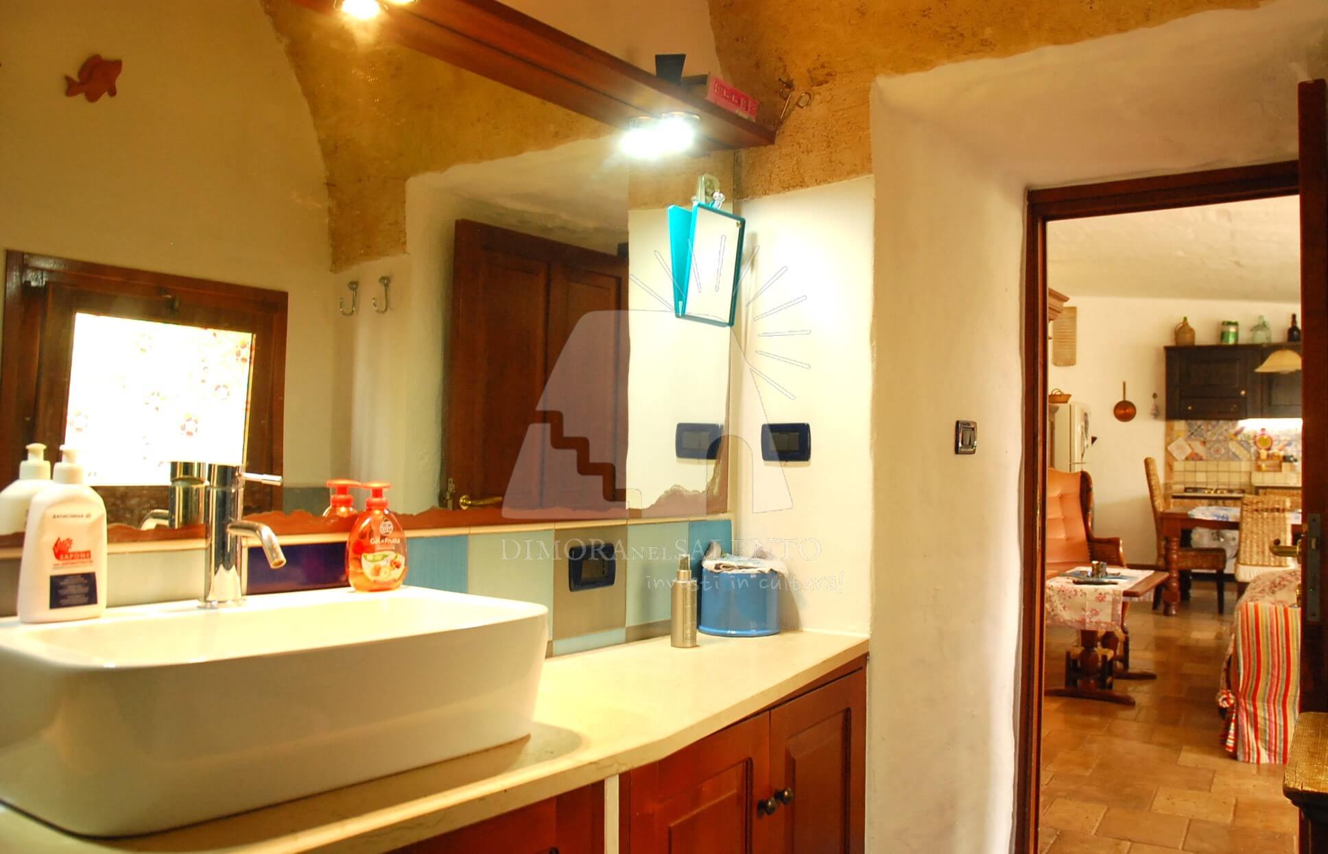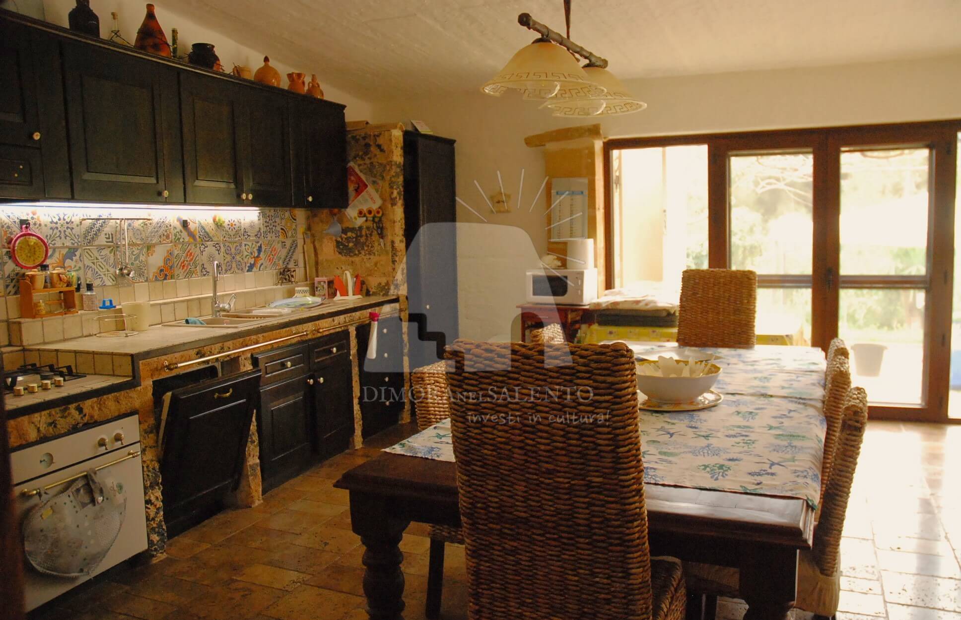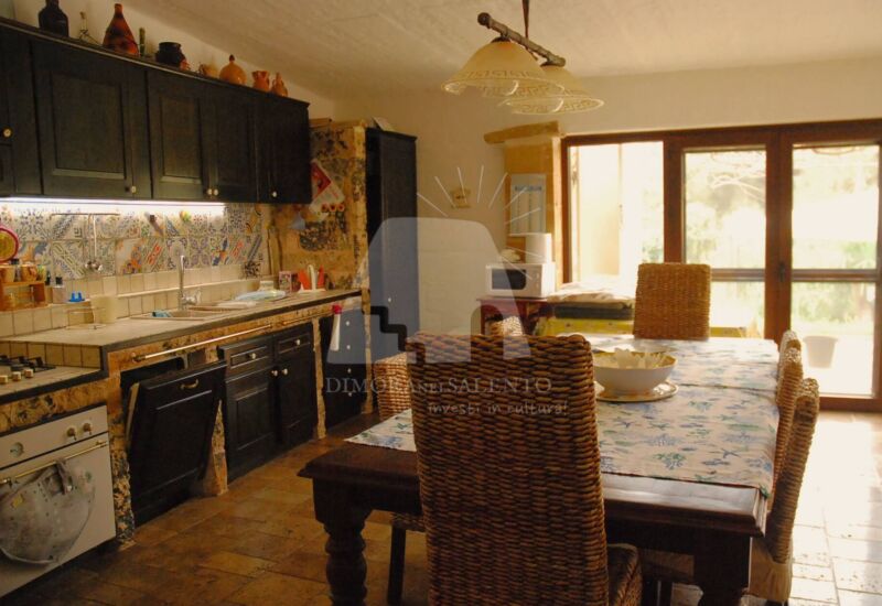 Il cuore pulsante della casa è la zona giorno, caratterizzata da una cucina abitabile spaziosa, ideale per chi ama vivere la convivialità e i sapori autentici della terra salentina.