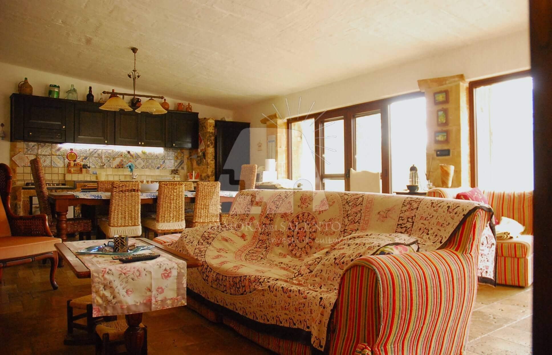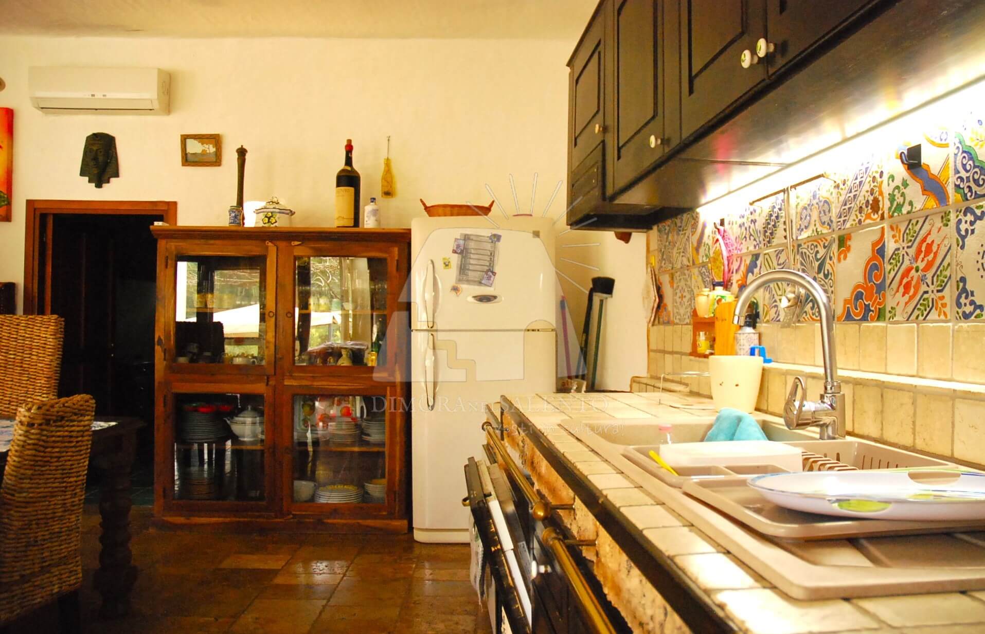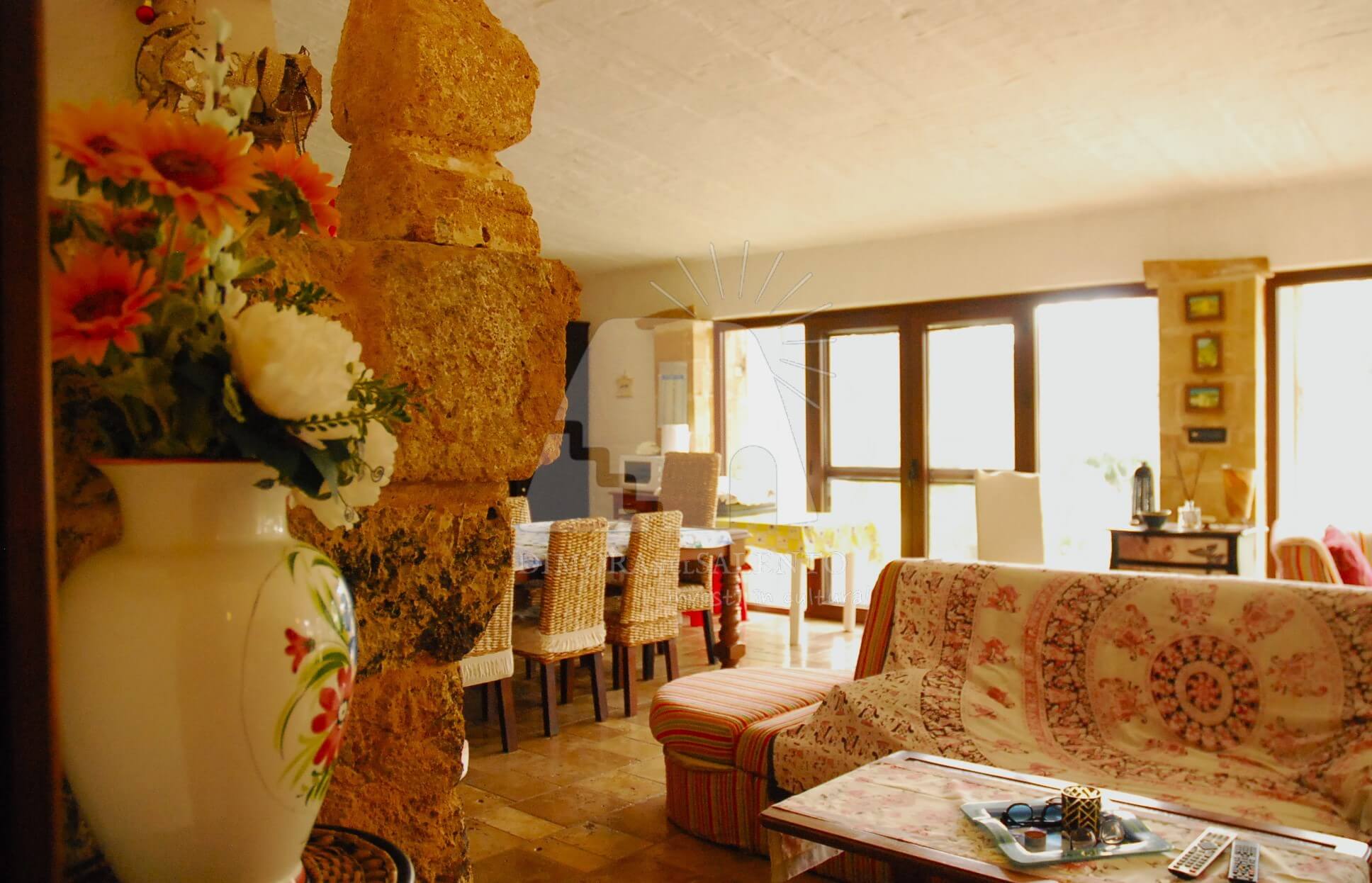 Il cuore pulsante della casa è la zona giorno, caratterizzata da una cucina abitabile spaziosa, ideale per chi ama vivere la convivialità e i sapori autentici della terra salentina.