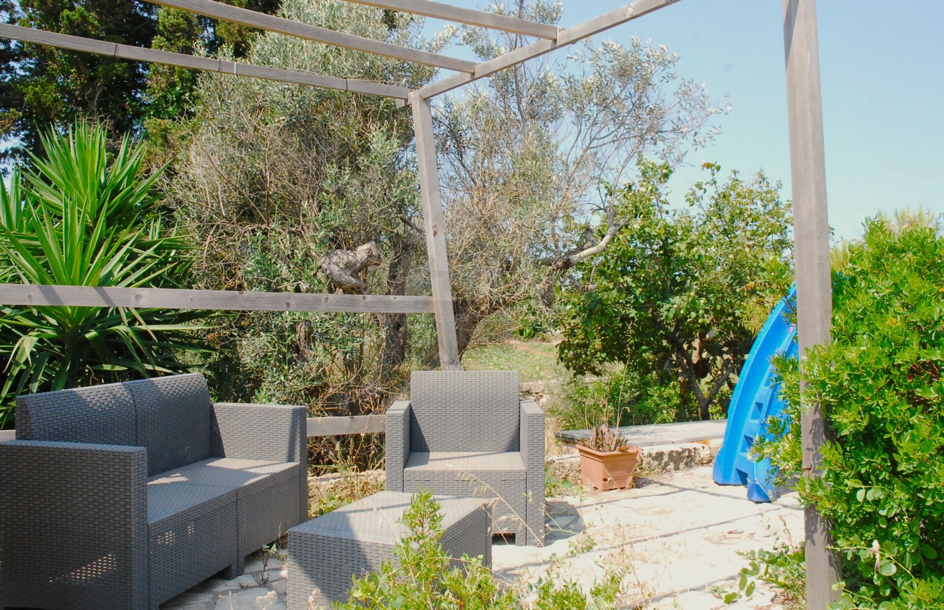 Immersa in un terreno di circa 1600 mq, la proprietà è circondata da alberi d’ulivo, agrumi e piante mediterranee, creando un’atmosfera perfetta per chi ama la natura e la tranquillità.