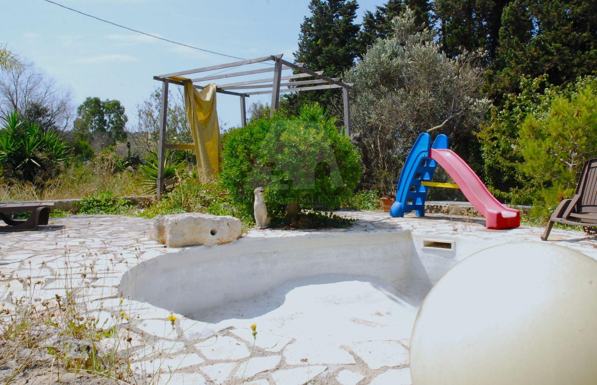 La verandina si affaccia sul giardino, creando un luogo ideale per godere delle fresche serate estive. Gli spazi esterni circondano l’abitazione, con aree pavimentate e verdi che invitano a trascorrere del tempo all’aperto. Non perdere l’opportunità di rinfrescarti nella piscina privata, perfetta per le calde giornate estive.